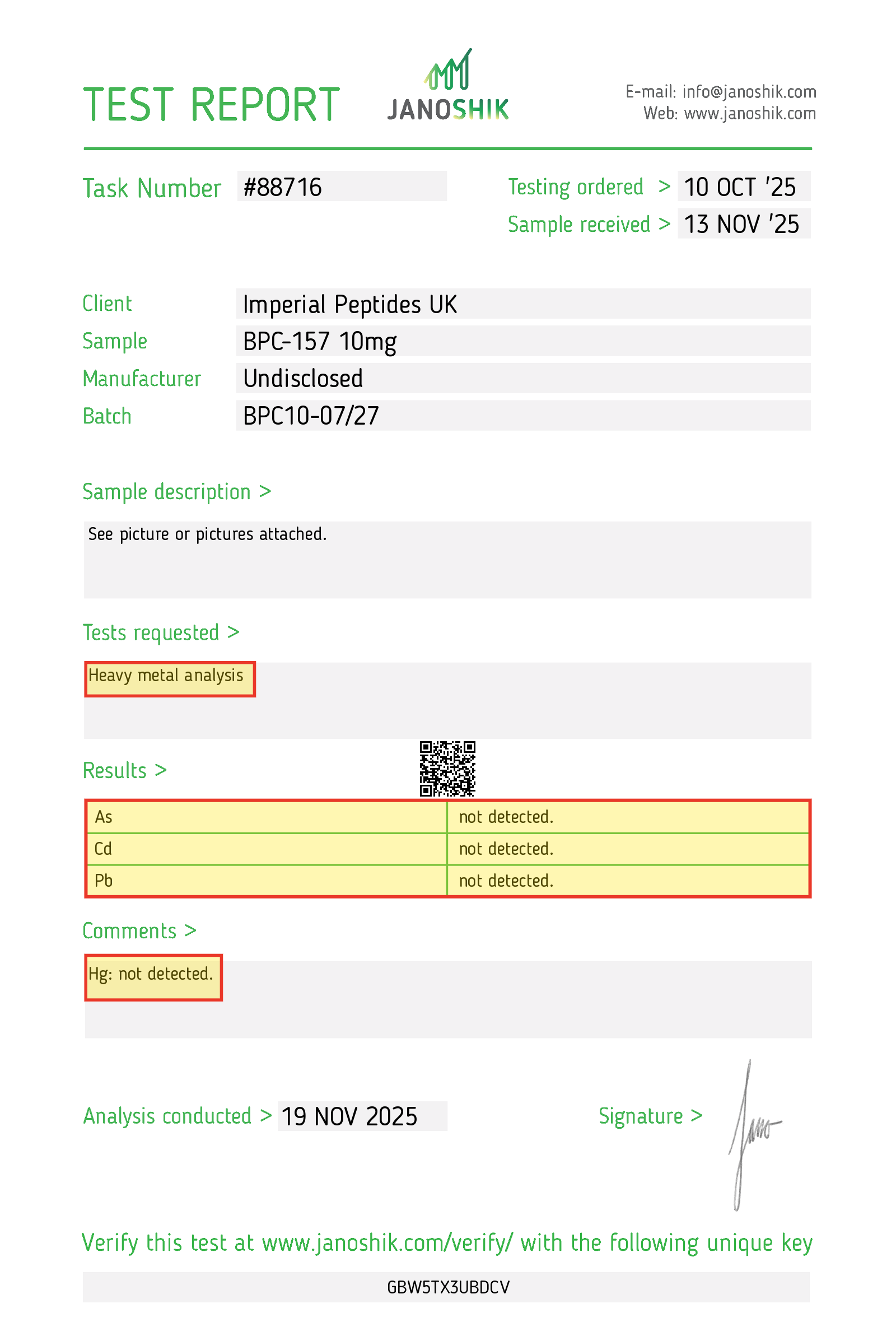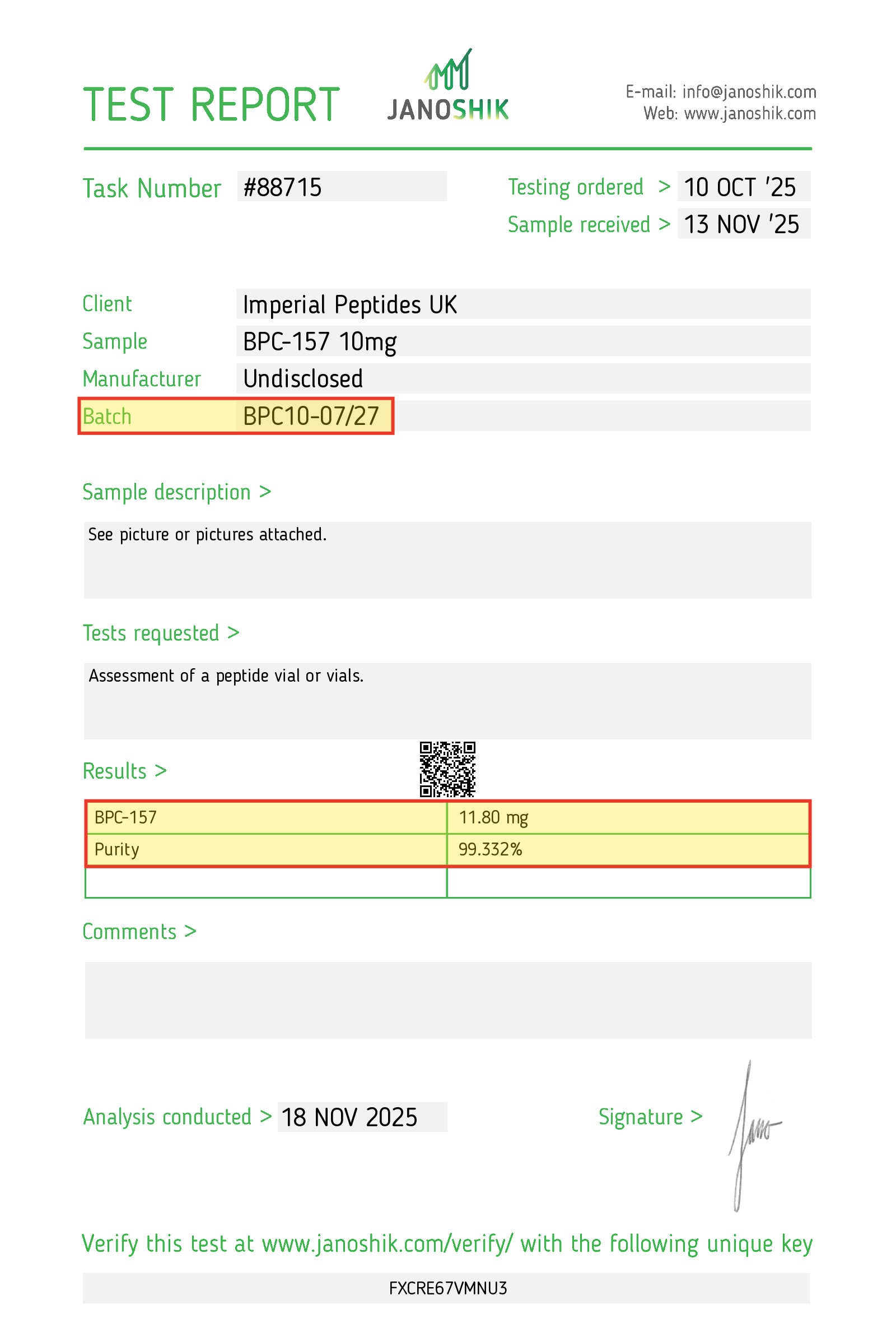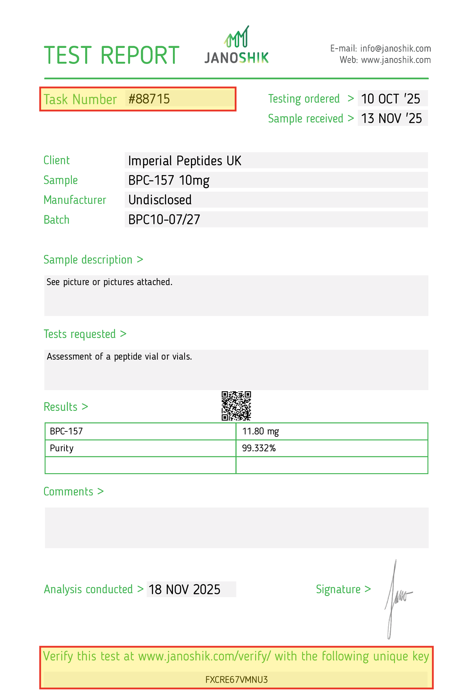 Visit: https://janoshik.com/verification/